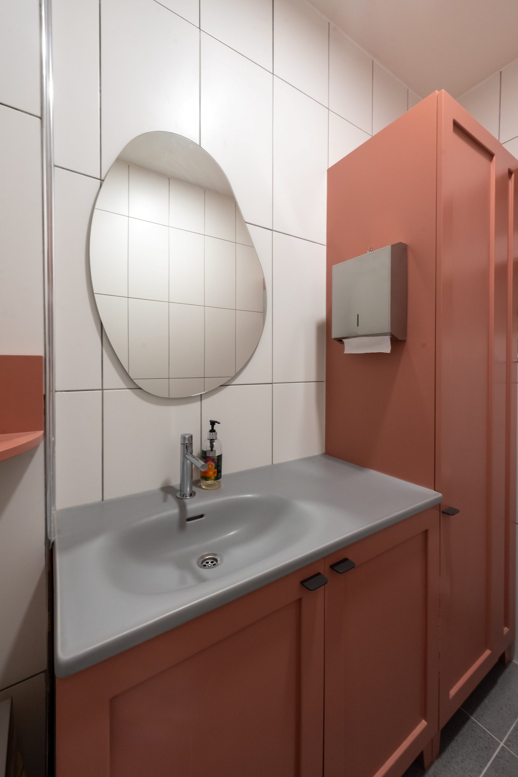 İkinci bölümde bulunan atölye kısmı showroomdan farklı olarak aynı dile sahip olsada ihtiyaç odaklı olarak planlandı. Ürünlerin ham hallerinin korunacağı ve sergilenmeden önce hazırlık ve fırınlamaların yapıldığı, aslında mekanın kalbi diyebileceğimiz bir alan oluşturuldu. Bununla beraber mekana hizmet edecek mutfak ve wc de bu ikinci bölümde konumlandırıldı.
